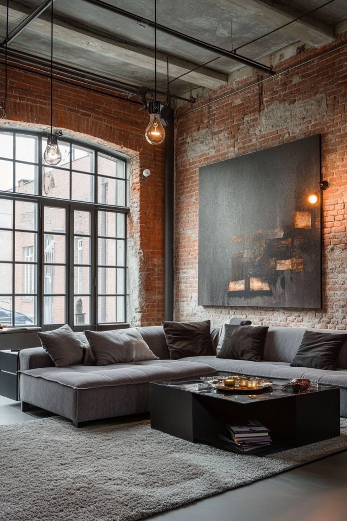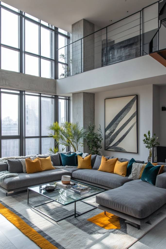 Incorporating bold patterns into your grey living space sets the stage for an urban loft aesthetic that exudes modern elegance. Think exposed brick walls, large windows, and high ceilings, which create a spacious feel. To enhance this vibe, use varying shades of grey—charcoal for the walls, lighter tones for furniture.