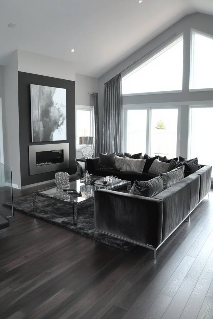 The allure of dark grey can transform your living room into a space of striking elegance and sophistication. By utilizing rich, deep hues, you create an atmosphere that exudes luxury while remaining inviting. Start with dark grey walls to anchor the room; they serve as a perfect backdrop for lighter furniture and décor. Consider incorporating metallic accents—think gold or silver—through lighting fixtures or decorative elements to infuse a touch of glamour.