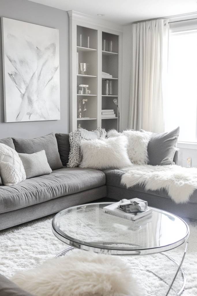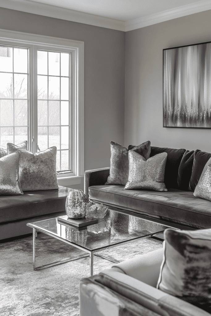 Consider adding bold accent pieces—think a charcoal-grey armchair paired with a silver throw blanket. To unify the space, use artwork that features multiple shades of grey, which can serve as a focal point. Layering rugs in different patterns and shades can create warmth and dimension.