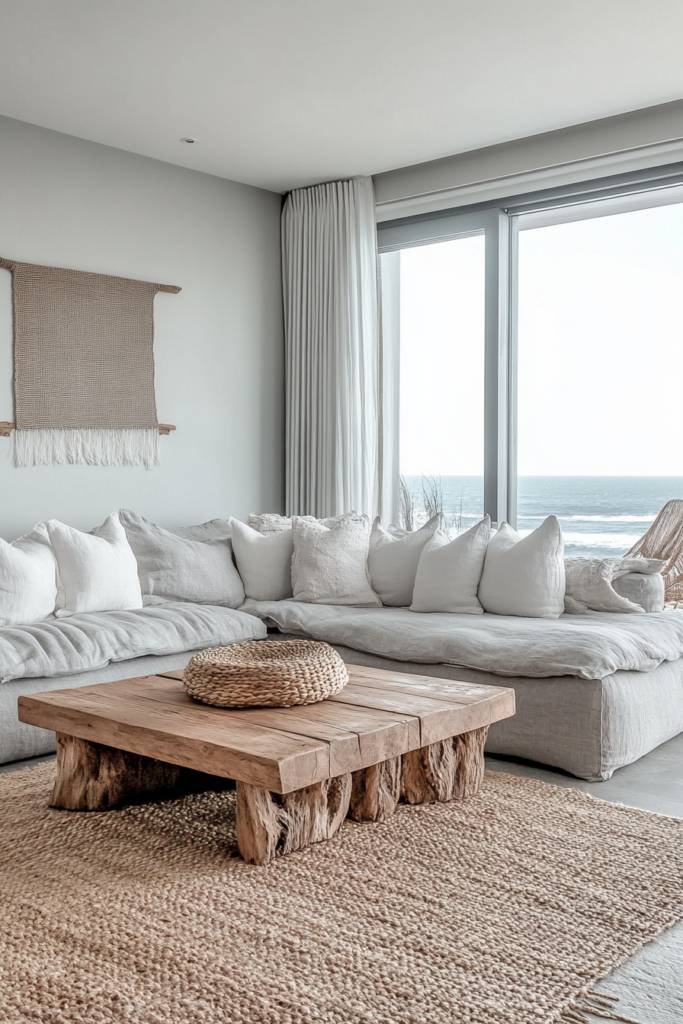 Add natural wooden accents, such as reclaimed furniture or driftwood-inspired decor, to enhance that coastal vibe. Consider using light, airy curtains that flutter gently, allowing sunlight to filter through and brighten your space.