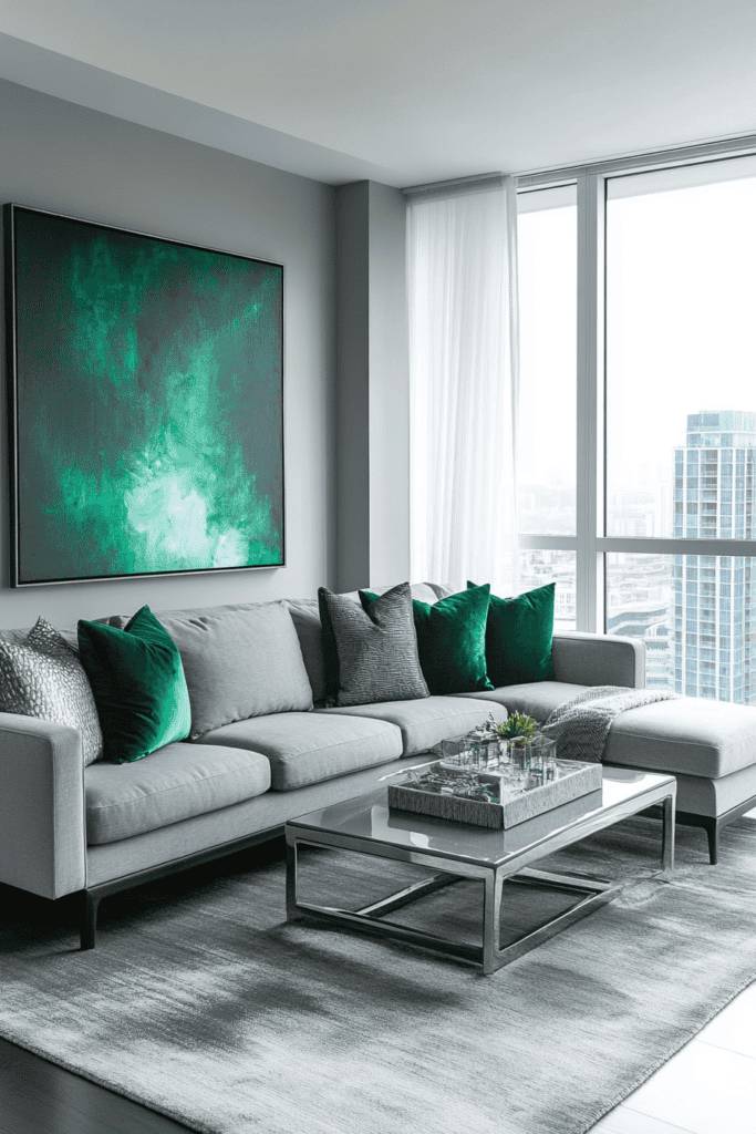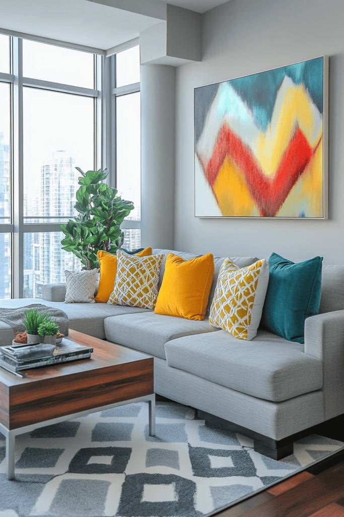 You might also think about using colorful furniture pieces, such as a striking armchair or a vibrant coffee table, to break the monotony of grey. Don’t shy away from patterns, either; geometric or floral designs can introduce a playful touch while maintaining a contemporary feel.