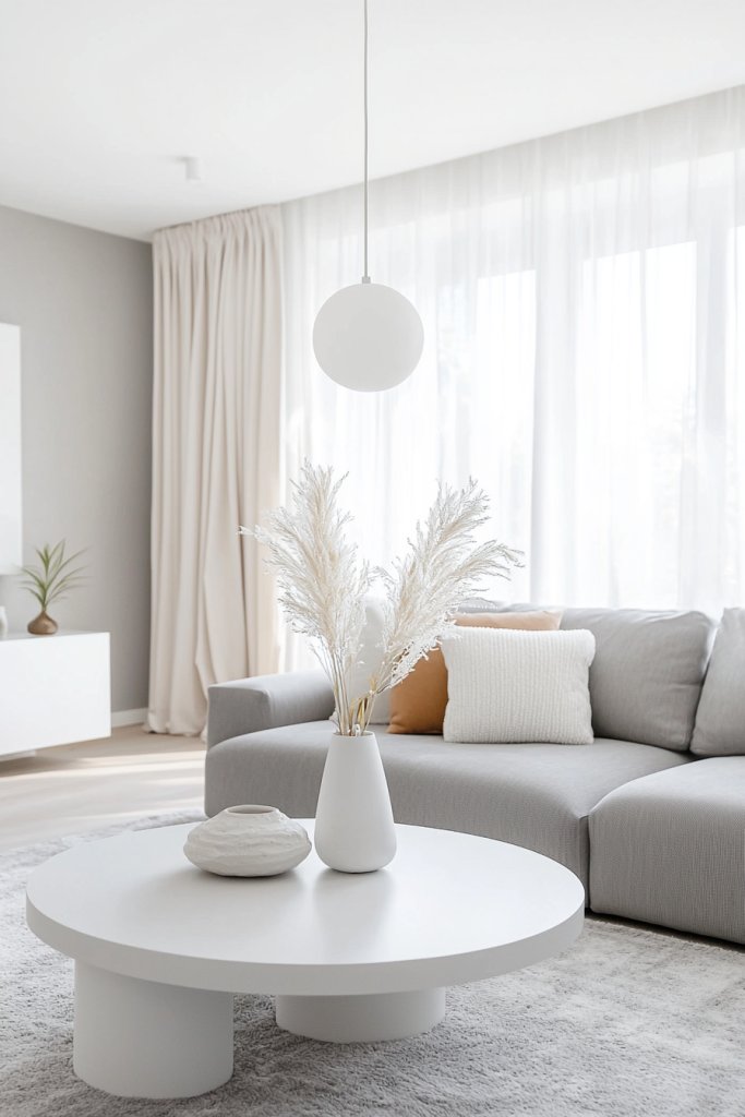 Choose sleek furniture with clean lines, like a low-profile sofa or a simple coffee table, allowing the space to breathe and feel open. Incorporate textures through a plush grey rug or a cozy throw, adding warmth without overwhelming the aesthetic.