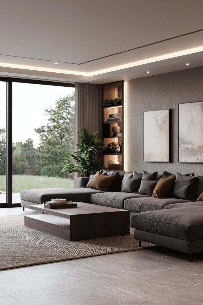 And don’t forget greenery; a few strategically placed houseplants can introduce a touch of life, balancing the muted palette. With each element in harmony, your living room becomes not just a space, but a retreat where you can unwind and recharge after a long day.