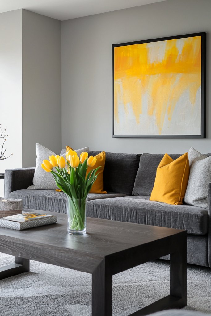 - Blend grey with warm beige or vibrant yellow accents for a balanced and inviting living space.