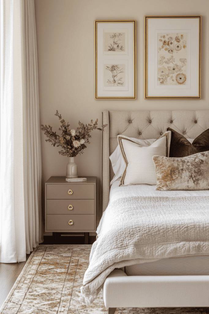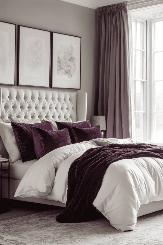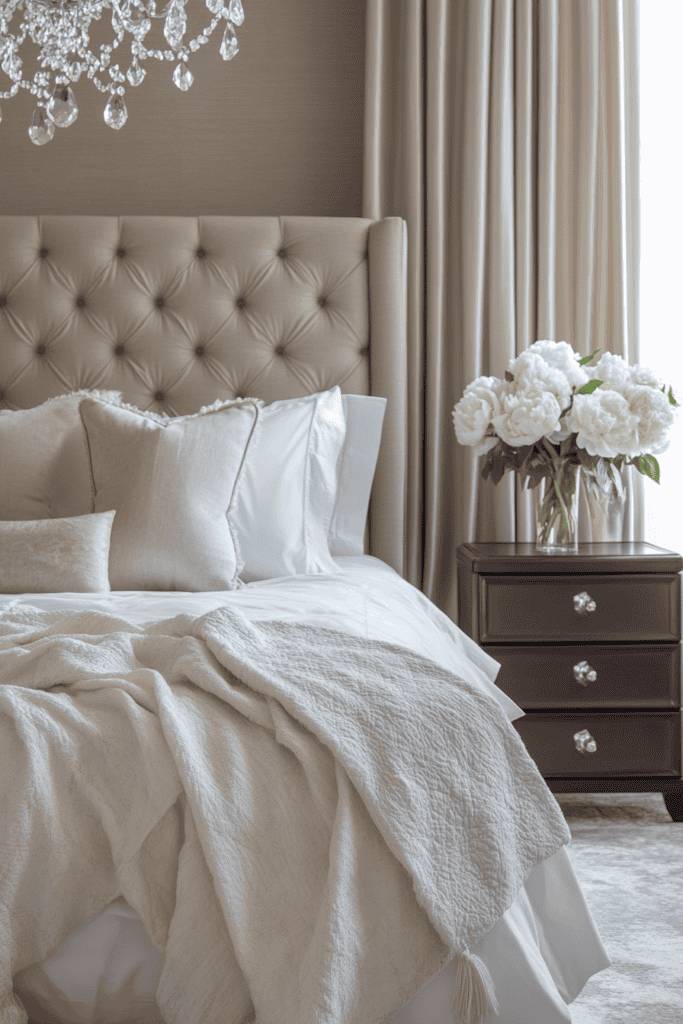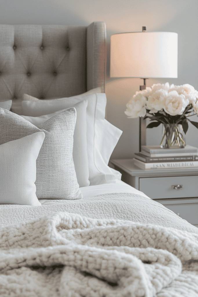 Imagine walking into a room where the walls are painted a calming taupe, paired with crisp white bedding and a light gray throw. The combination fosters a peaceful atmosphere, allowing your mind to unwind.