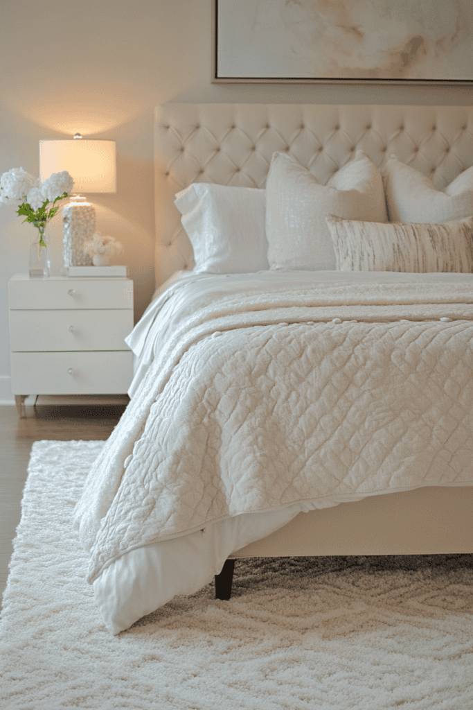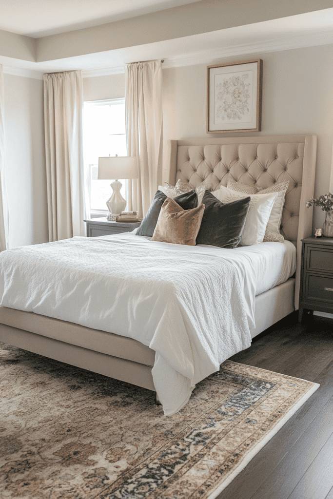 Finally, consider a beautiful area rug that anchors the space and adds warmth underfoot. Layering these textiles not only enhances comfort but also allows you to express your personal style, making your bedroom a true retreat. Embrace the art of layering for a sophisticated and inviting atmosphere.