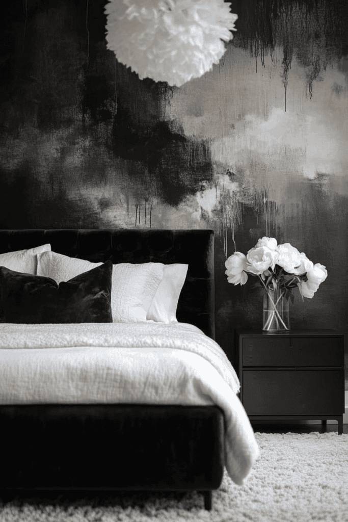 While you may love the idea of a serene monochrome palette, introducing bold accent walls can transform your bedroom into a dynamic space that reflects your personality. A striking wall in a rich jewel tone, deep navy, or vibrant red can act as a focal point, drawing the eye and adding depth.