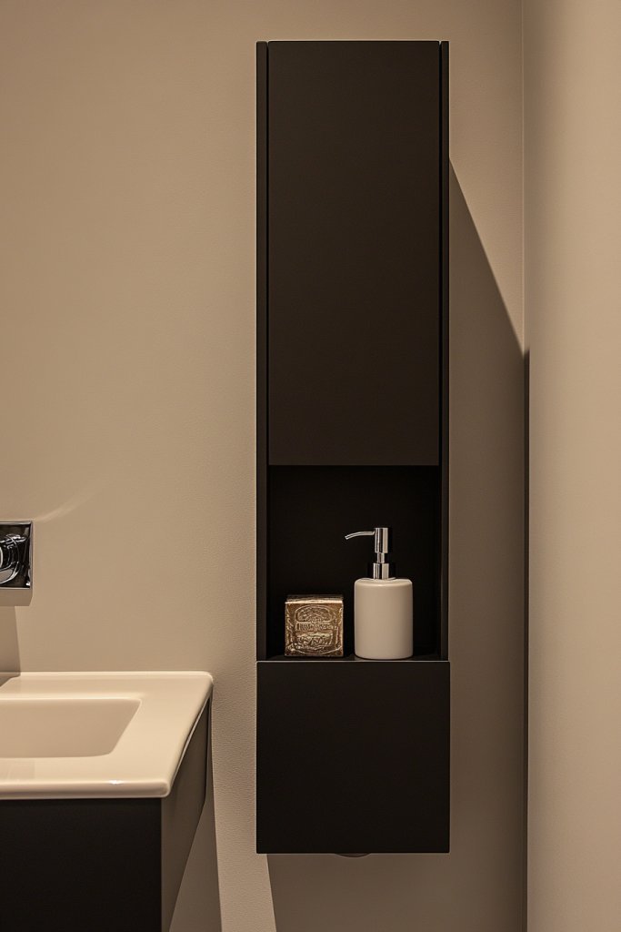 Clutter is the enemy of a serene, functional half bath. Compact storage solutions help keep your essentials organized without sacrificing style. They’re essential for making a small space feel tidy and inviting.