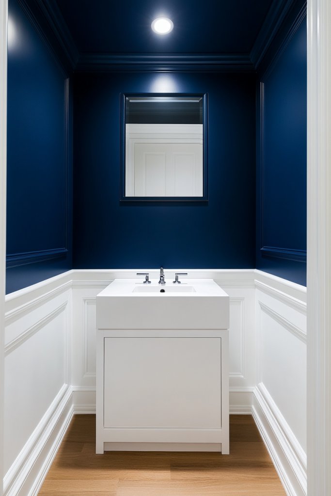 Imagine walls painted in a deep navy that makes the white fixtures pop or a rich emerald that adds a lush, calming vibe. The glossy finish on these colors reflects light beautifully, making the space feel larger and more energetic. Pair the walls with crisp white trim or matte black accents for a modern, sophisticated look. The bold hue practically screams personality while still being elegant.