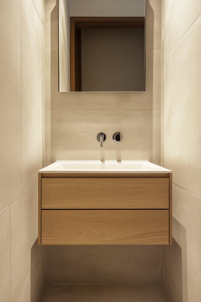 Nothing kills a sleek bathroom look faster than outdated or bulky fixtures. You want your half bath to look polished and modern, with fixtures that blend seamlessly into the design. Wall-mounted faucets and fixtures are a game-changer—they save space and add a touch of elegance.