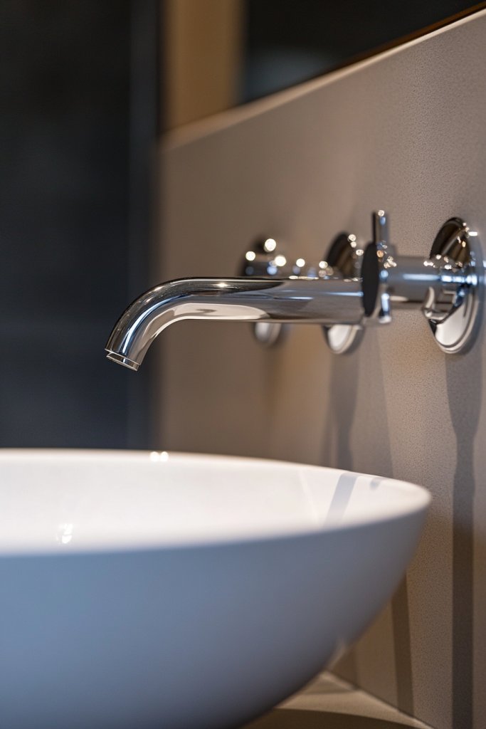 Imagine a minimalist wall-mounted faucet in matte black or brushed nickel, positioned perfectly above a simple vessel sink. The clean lines and absence of a bulky deck make the space feel uncluttered. The fixtures reflect light softly, creating a subtle shimmer that enhances the overall aesthetic. It’s a look that’s both functional and visually striking.