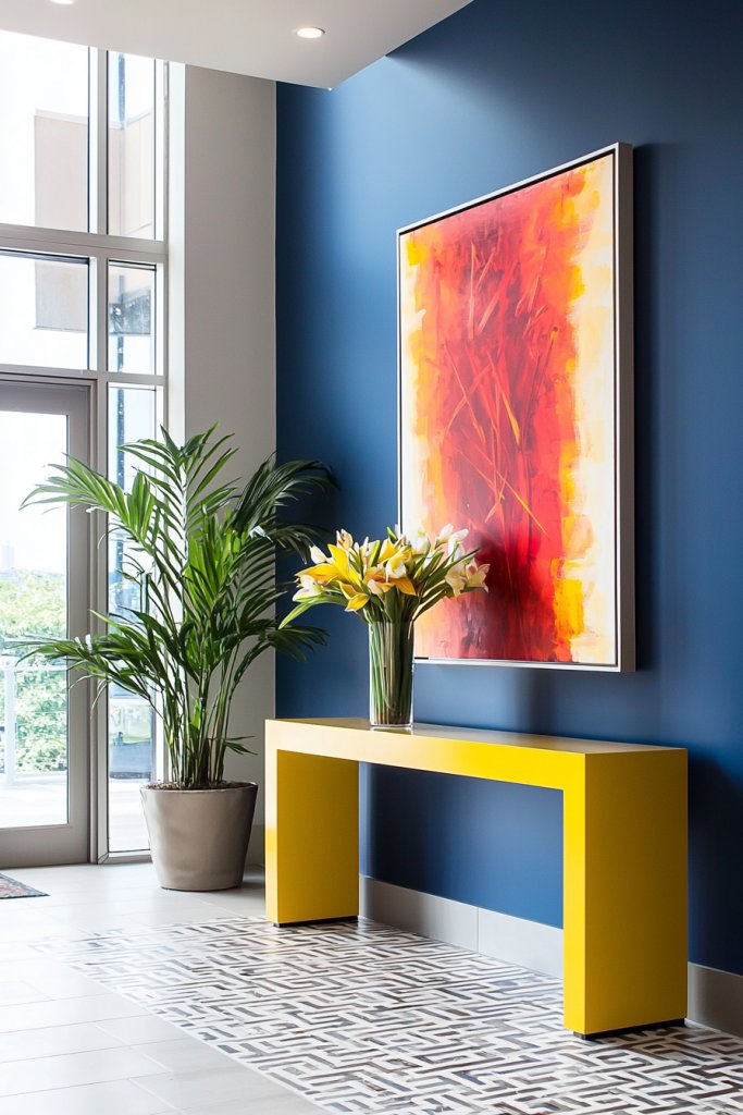 Your hall can be transformed into a bold expression of your personality with the strategic use of vibrant colors. Imagine a deep teal accent wall that draws the eye or a sunny yellow that instantly uplifts the space.