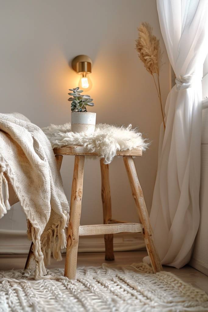 After releasing creativity in the playroom, why not turn your attention to the bedroom? With just a FROSTA stool from IKEA, you can create a unique bedside table that’s both stylish and functional. Start by flipping the stool upside down; it’s the perfect height for a bedside companion. To add a personal touch, consider painting it in a color that complements your room’s decor or applying a wood stain for a more natural look.