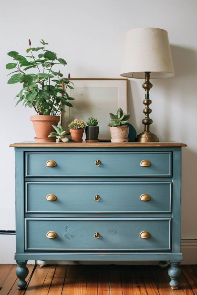 Once the paint dries, consider swapping out the standard hardware for something eye-catching. Unique knobs or handles can elevate the dresser’s look from basic to fabulous. Mixing metals, like brass and matte black, adds an interesting contrast.