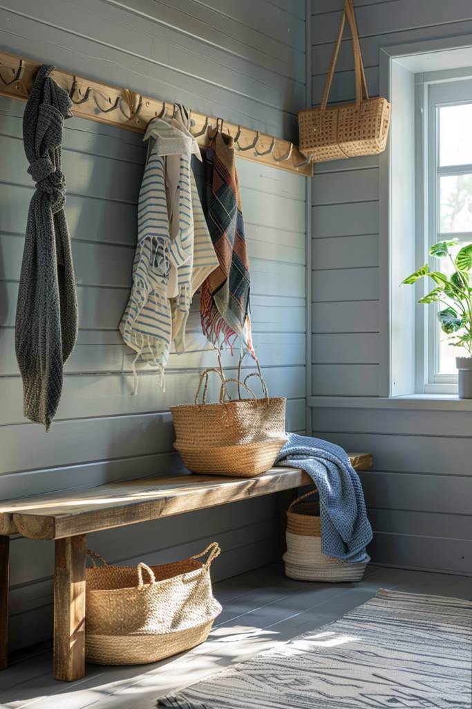To maximize functionality, place the hooks near a bench or storage cubbies. This way, you create a seamless flow for tossing off shoes and hanging up belongings as you enter. Pair the hooks with a decorative tray for keys and smaller items, keeping your mudroom tidy.