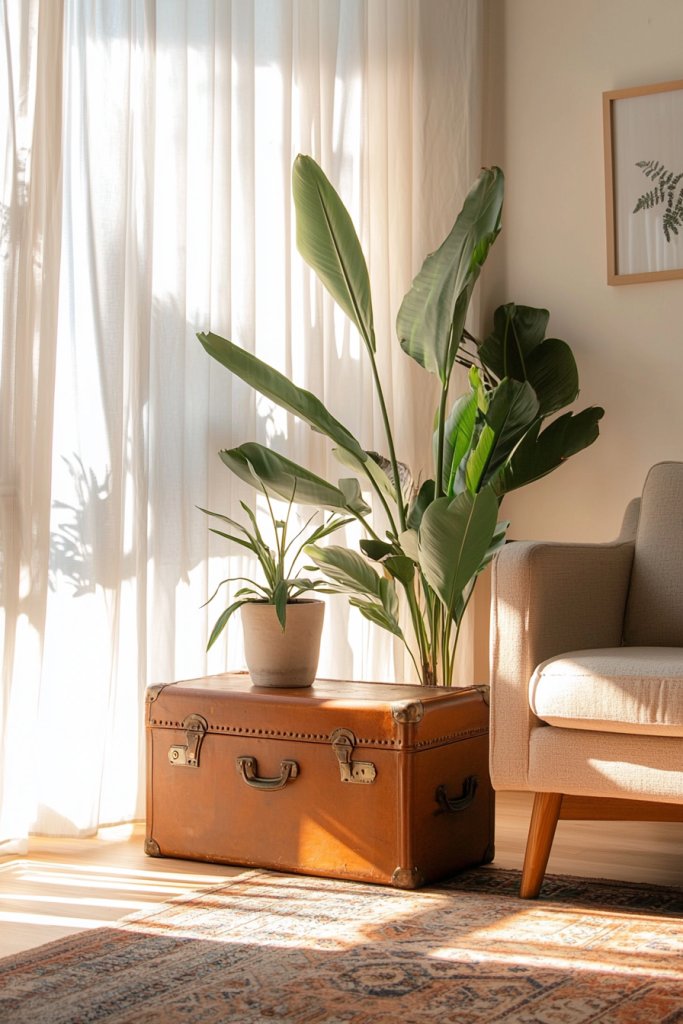 Want a creative touch? Use smaller suitcases to display your favorite books or magazines. If you’re feeling adventurous, repurpose them as a nightstand or a low coffee table, creating a functional yet playful element in your room.