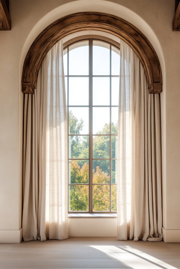 5. Classic Arched Windows with Light, Flowing Curtains