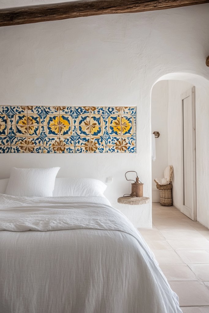 Does your bedroom feel a bit dull or sterile, lacking that warm, inviting Mediterranean charm? White walls are a classic canvas but can sometimes feel too plain. Pairing them with colorful tiles creates a striking contrast that adds personality and vibrancy. It’s a simple way to turn a basic space into a lively, authentic retreat.