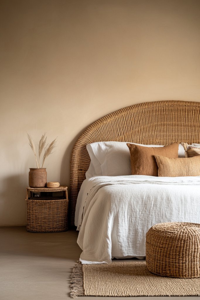 Start with a woven headboard or a set of baskets in natural rattan or wicker. Regularly dust or wipe with a damp cloth to maintain their appearance. To add color, consider painting or staining wicker with water-based dyes—though natural tones work beautifully as is. Use these accents to create storage solutions or visual focal points. Pair with neutral linens to let the textures shine.