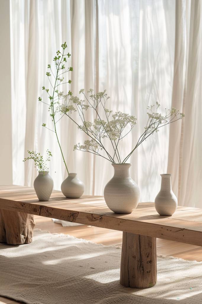 Consider using simple, ceramic pots or wooden planters that blend seamlessly with your aesthetic. Place them on low tables or windowsills to draw the eye and create a sense of harmony.
