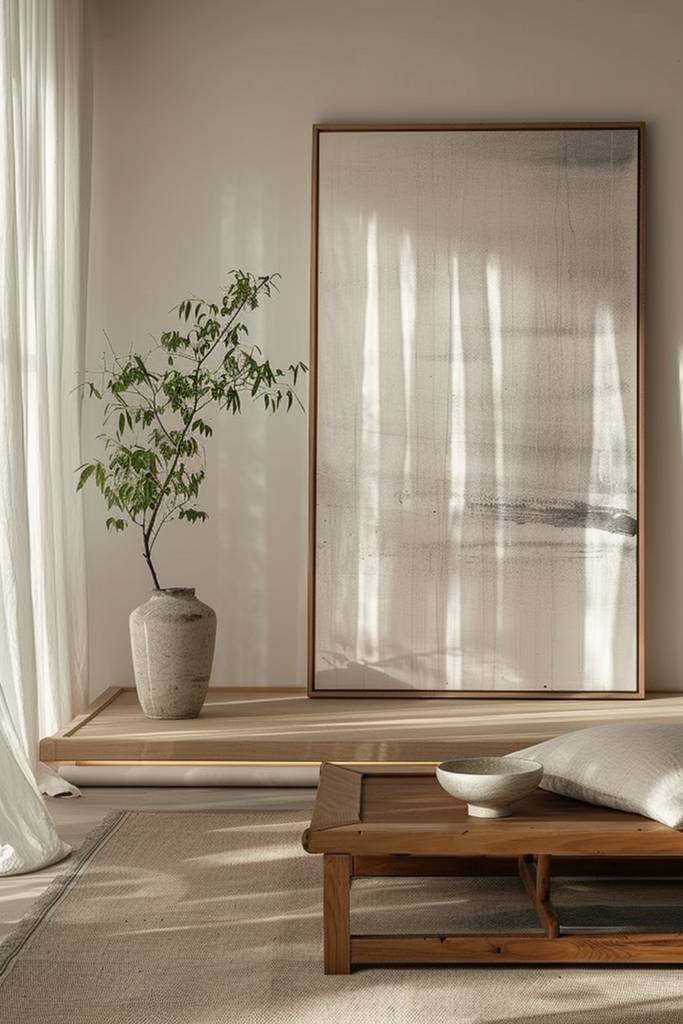 Choosing simple artwork is essential for enhancing the tranquil vibe of a Japandi interior, as it allows the natural beauty of the space to shine without overwhelming it. Opt for pieces that embody minimalism, focusing on calming colors and understated forms. Think about delicate line drawings, abstract shapes, or serene landscapes that evoke a sense of peace.