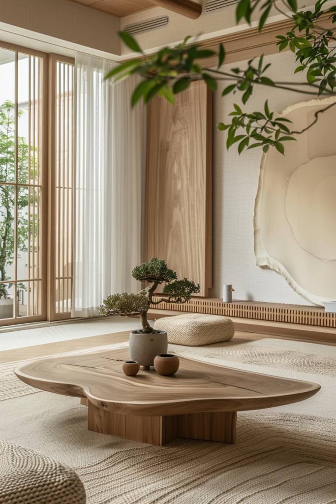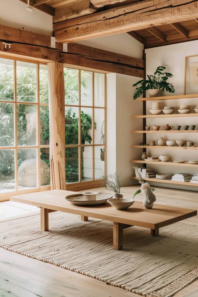 Incorporating natural materials into your Japandi interior brings an organic touch that enhances the overall aesthetic. Think about using wood, stone, bamboo, and jute to create a harmonious balance between nature and design. Choose warm-toned woods for furniture or flooring, as they add warmth and texture, grounding your space.