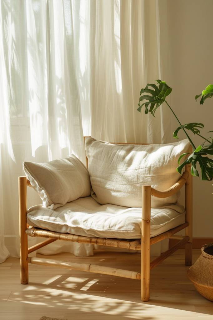 Incorporate a small side table for your favorite book or a hot cup of tea. Surround yourself with greenery—think potted plants or a simple bonsai—to add a touch of nature. Soft, ambient lighting, such as a stylish floor lamp or candles, enhances the serene atmosphere.