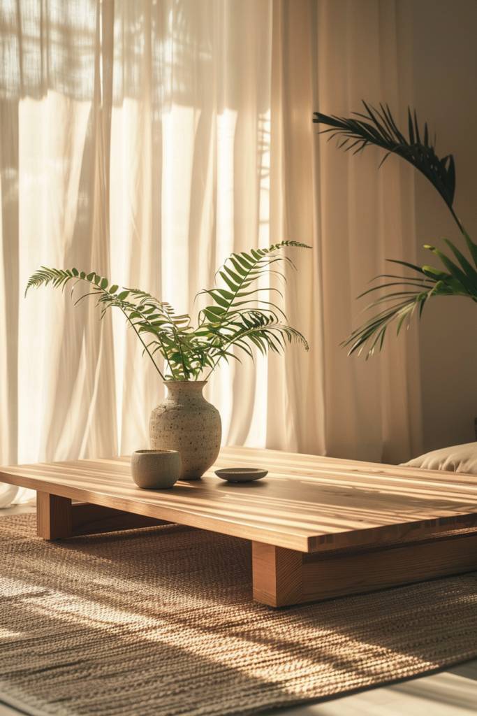 Minimalist furniture is the backbone of any Japandi interior, creating a clean and uncluttered space that promotes tranquility. When choosing your pieces, think simplicity and functionality. Opt for furniture with sleek lines and neutral colors that blend seamlessly into the background, allowing natural materials and textures to shine. Look for items made from wood, bamboo, or rattan, emphasizing craftsmanship and organic shapes.