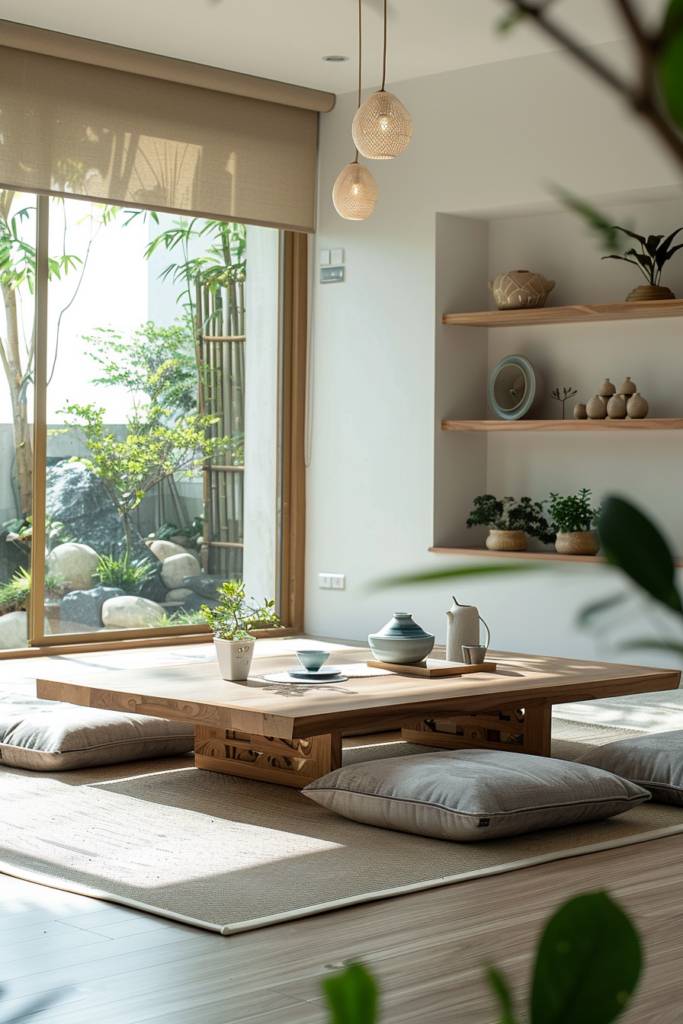 Strategically placed plants can also add life to your open spaces, bringing in a touch of nature that aligns with the Japandi philosophy. Remember, the goal is to create a harmonious environment where each element has its purpose, contributing to an overall sense of tranquility and balance.