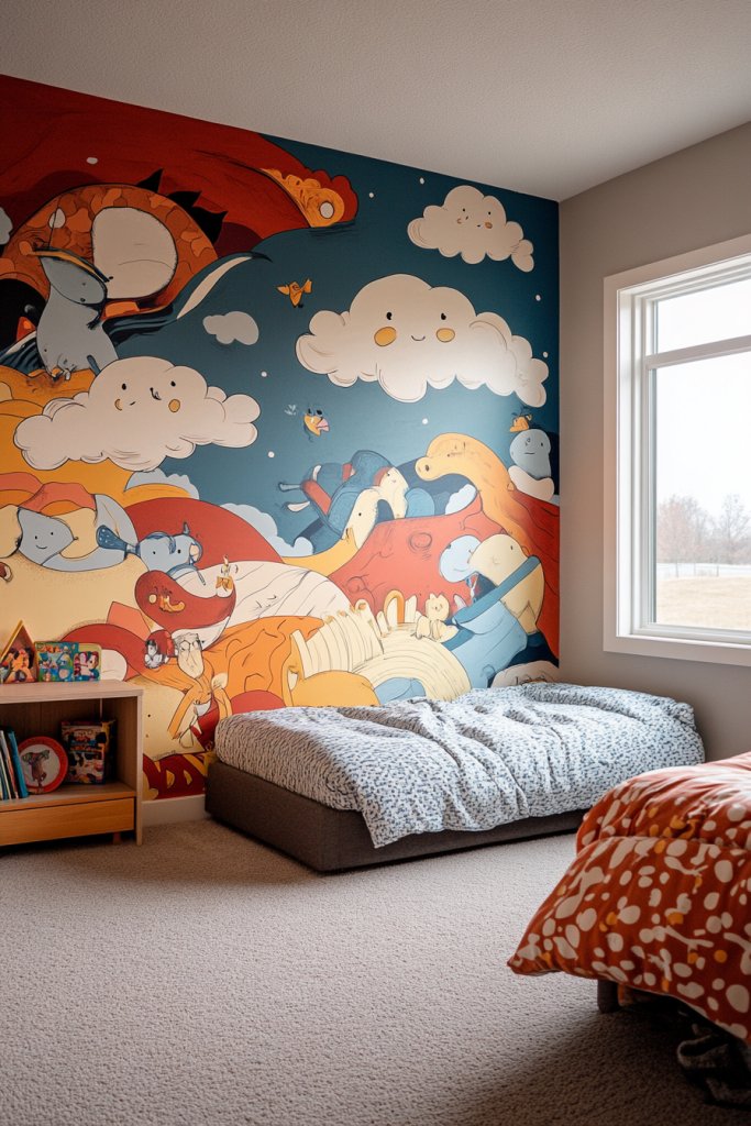 A vibrant mural transforms a plain room into an imaginative haven, boosting your child’s creativity. It’s a simple upgrade with enormous impact—proof that small touches make a big difference. Your child’s room can become a canvas of endless adventures, inspiring confidence and joy every day.