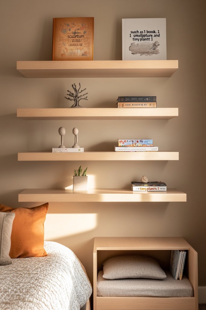 Cluttered surfaces and overflowing toy boxes make organizing a nightmare. Kids need a neat, accessible way to display their favorite items without sacrificing style. Floating shelves offer a sleek, functional solution that keeps essentials within reach.