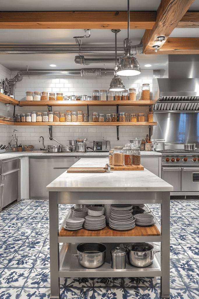 Consider a centralized island, not just for prep work but as a gathering spot for friends and family. Open shelving showcases your finest cookware and spices, adding both style and accessibility. Bright task lighting illuminates your workspace, ensuring precision in every dish.