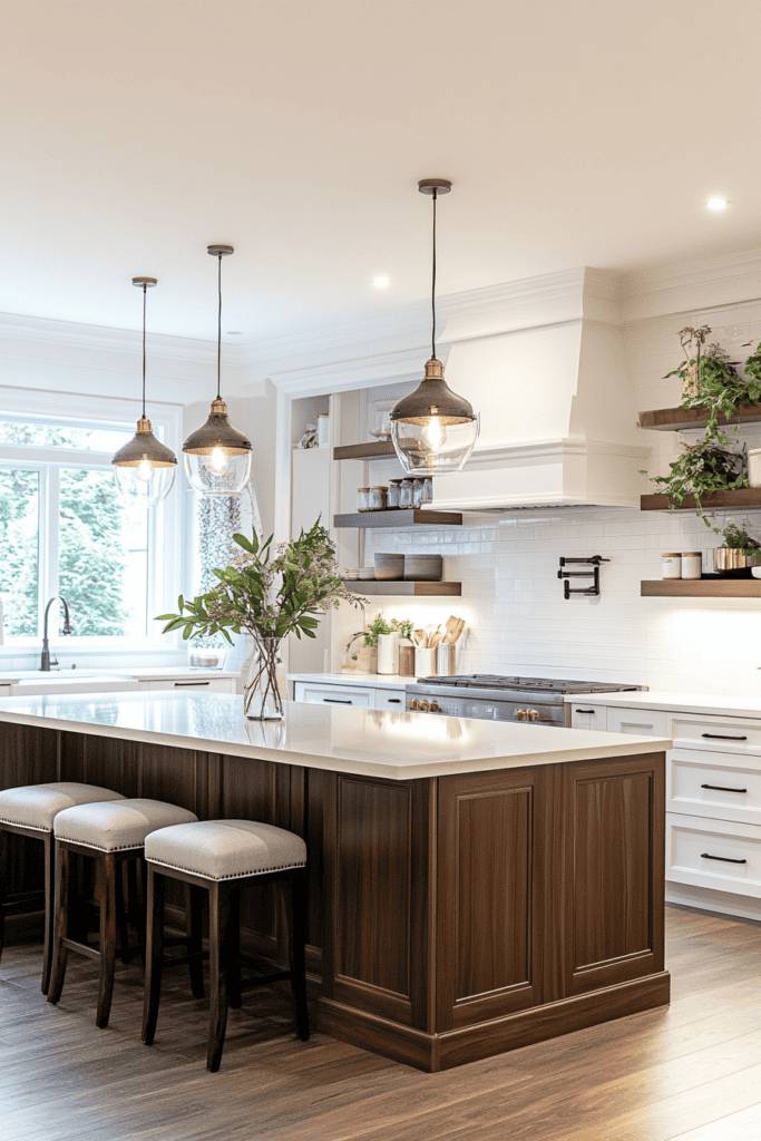 Incorporating mixed materials is key; consider pairing a rustic wood island with quartz countertops for an elegant contrast. Open shelving can showcase curated dishware, merging style with practicality. Lighting plays a crucial role too; pendant lights over the island not only illuminate but also serve as a design statement.