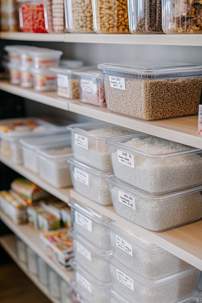 1. Utilize Clear Stackable Storage Containers for Pantry Items