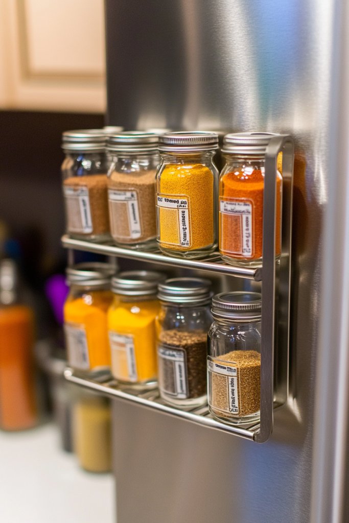 10. Install a Magnetic Spice Jar Rack on the Fridge or Wall
