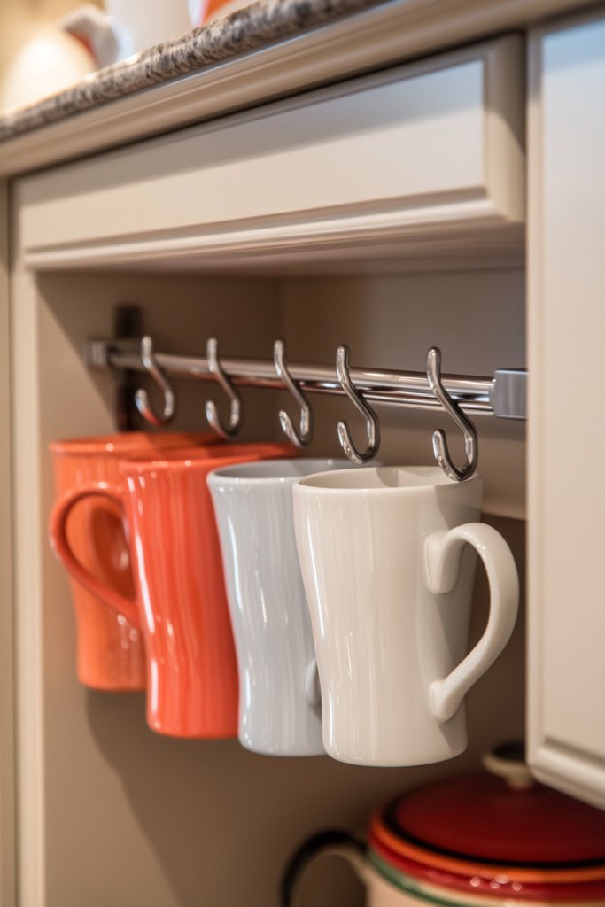 15. Add Hooks Under Cabinets for Mugs, Towels, and Small Items