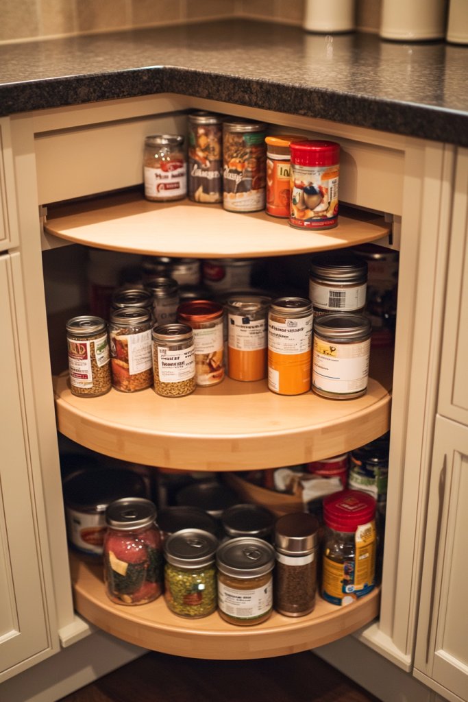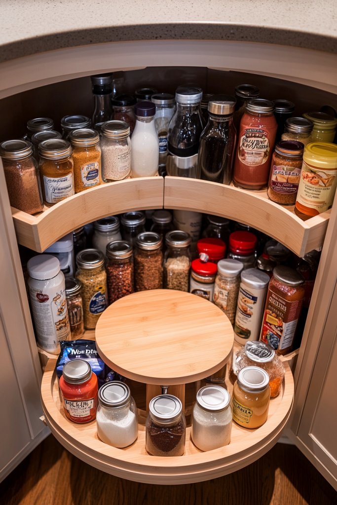 18. Incorporate a Lazy Susan or Turntable for Baking Supplies and Condiments