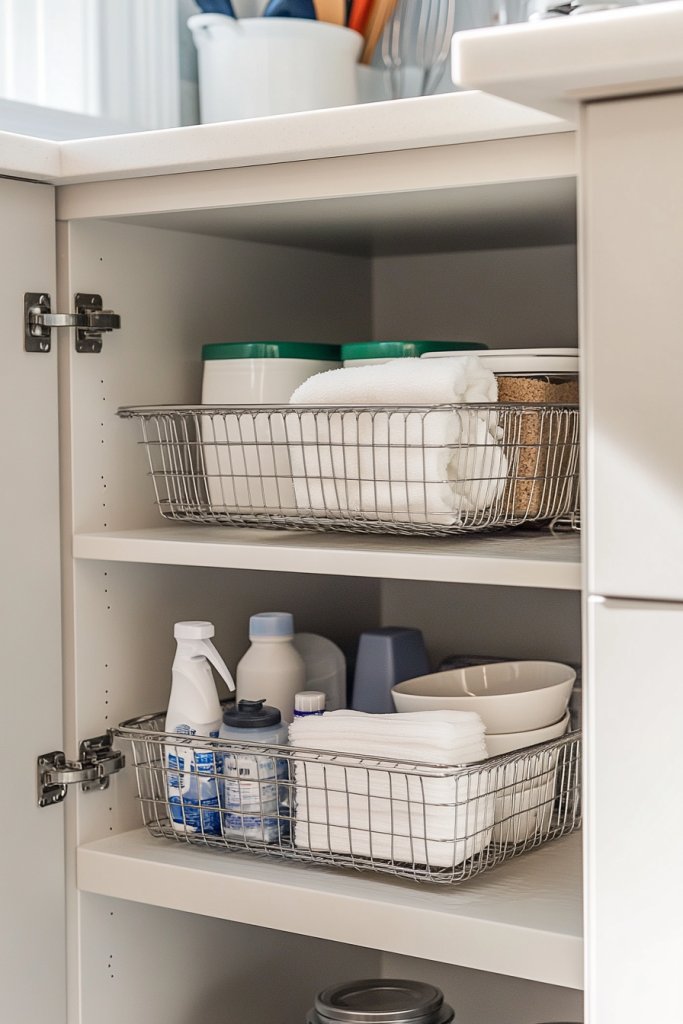 9. Use Under-Shelf Baskets to Maximize Vertical Space in Cabinets