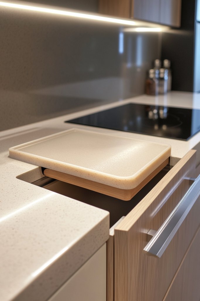14. Incorporate a Recessed or Drop-Down Cutting Board for Extra Prep Space
