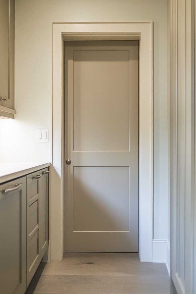 Visualize a sleek, flush-mounted sliding door that disappears into the wall when open. The door’s finish matches your cabinetry or wall color for a seamless look. When closed, it creates a clean, minimalist partition. This setup not only saves space but also adds a modern, streamlined aesthetic.