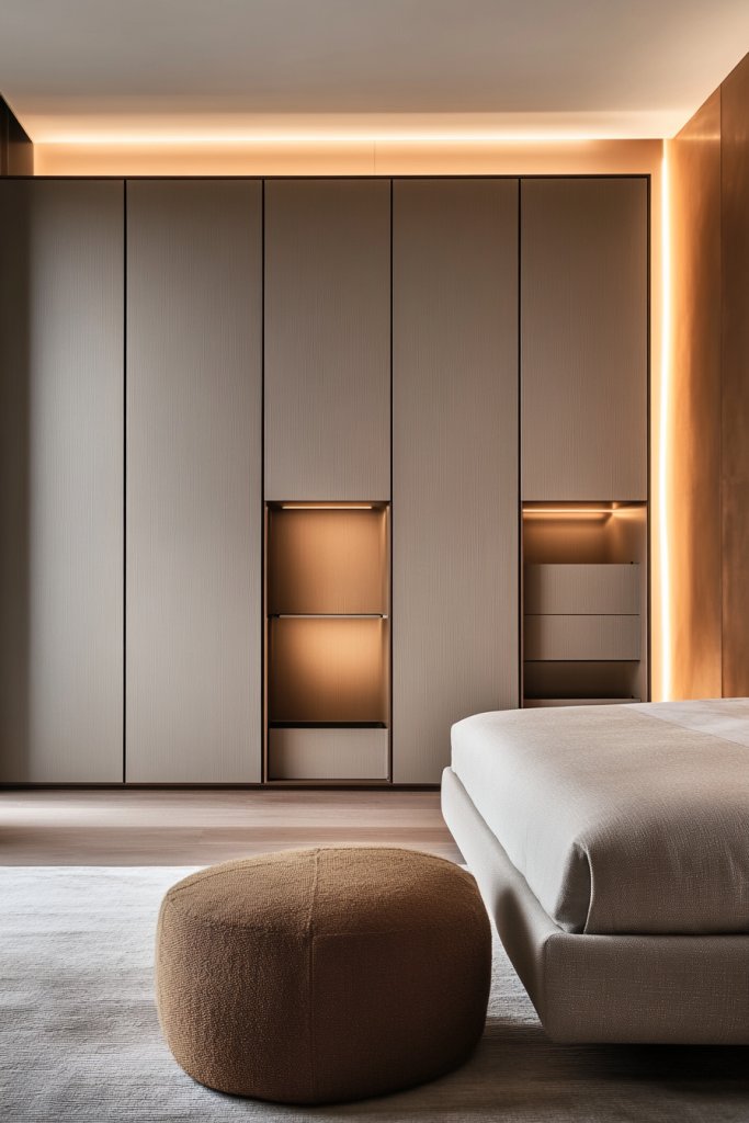 10. Floating Wardrobe Cabinets with LED Accent Lighting