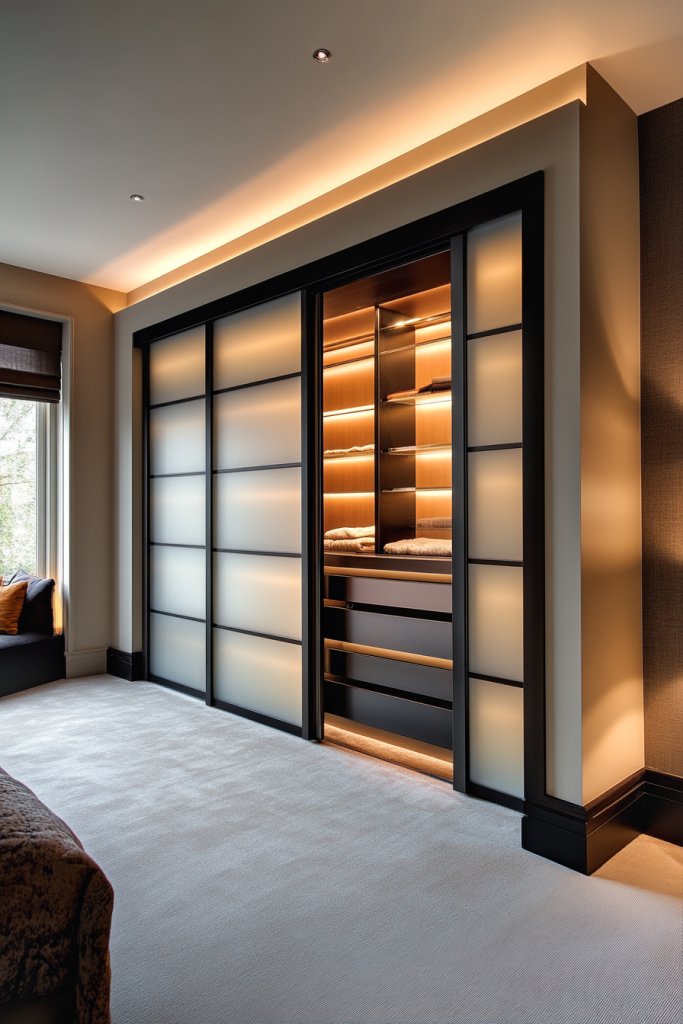 Introduce personalized touches with custom cabinetry, soft-close mechanisms, or textured wall finishes behind the glass. Use subtle lighting—recessed or strip—to highlight your wardrobe’s interior. Incorporate a plush rug or seating area outside for dressing comfort. Keep accessories organized with sleek, minimal storage solutions.