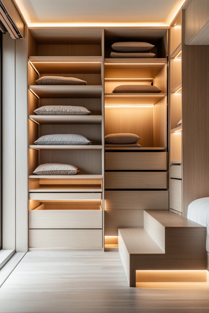20. Compact Wardrobes with Fold-Down Shelves for Versatile Storage