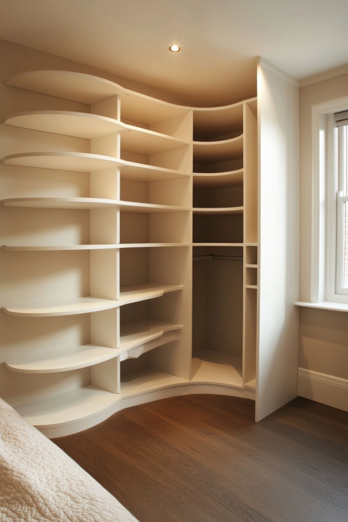 4. Corner Wardrobes with Rotating Shelves for Full Room Utilization