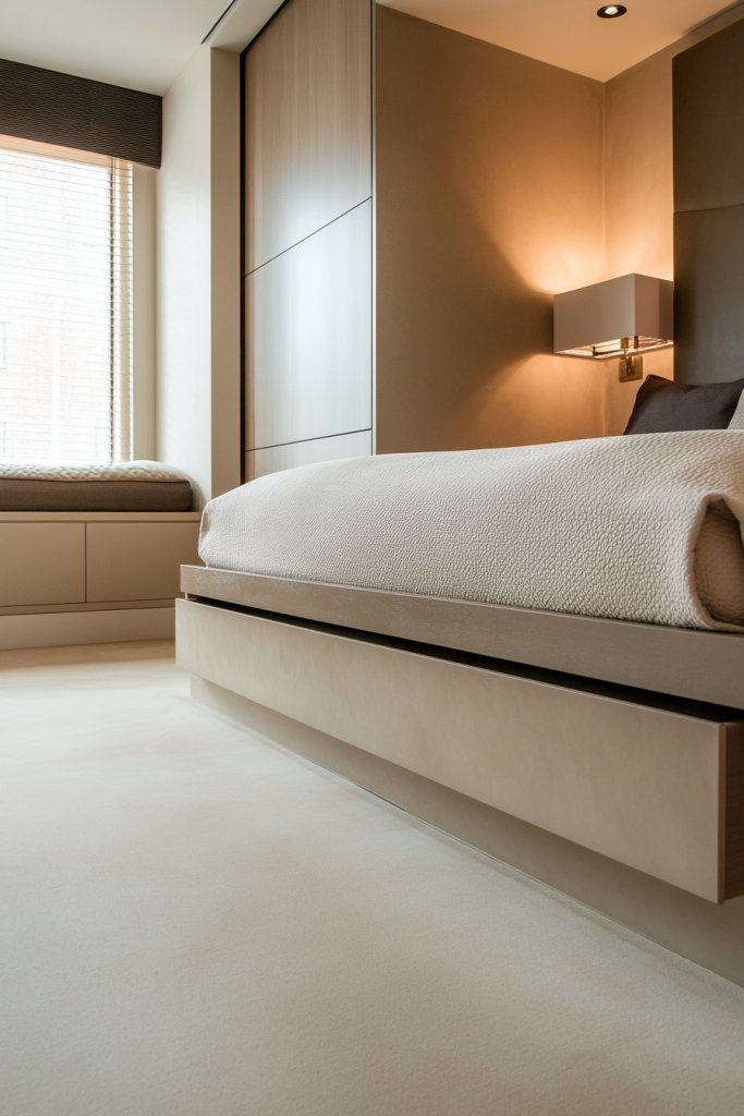 Choose from built-in drawers, lift-up beds, or slide-out containers—each suited to different needs and styles. Use soft-close mechanisms to avoid noise and wear. Opt for neutral finishes or match the storage units with your bed frame. For a more modern look, select sleek, minimal hardware or integrated handles.