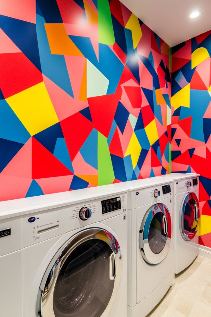 Ever feel like your laundry area is stuck in the dark ages? Maybe you want a space that sparks energy every time you step in. Bright geometric prints can transform dull walls into vibrant focal points that lift your mood. Who says laundry rooms can’t be lively and inspiring?