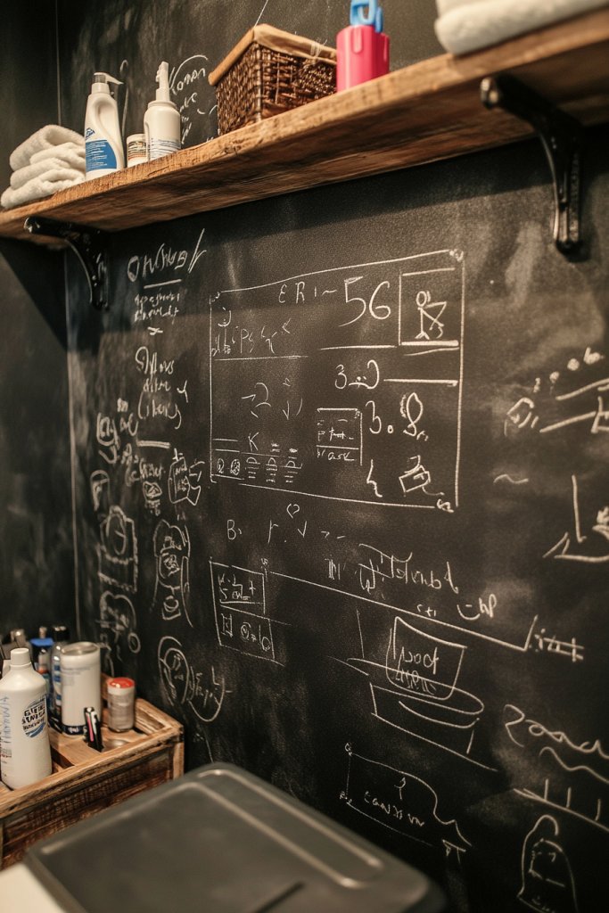 Personalize with colorful chalks, cute doodles, or custom labels for laundry zones. Add small decorative hooks or clips for hanging notes or keys. Incorporate a small decorative tray or container for chalk and erasers. These small details turn a functional wall into a charming, organized feature.