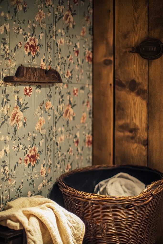 Craving a laundry space that feels cozy and nostalgic? Vintage floral wallpaper can bring a charming, retro touch that transforms your mundane laundry corner. It’s like adding a little bit of garden party elegance without any real flowers. Who says chores can’t be pretty?