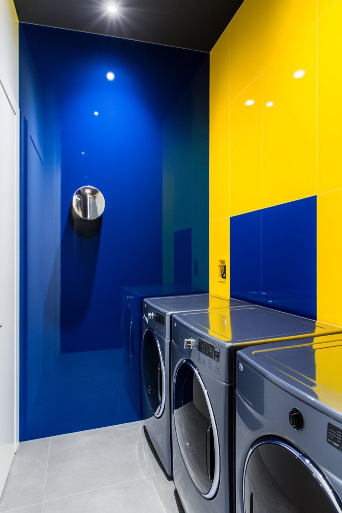 Add metallic or textured accessories, such as hardware or storage bins, that complement the bold colors. Incorporate artwork or decals that echo the color palette. Personal touches like custom labels or patterned textiles soften the boldness and add personality. This style creates a vibrant, energetic laundry zone.
