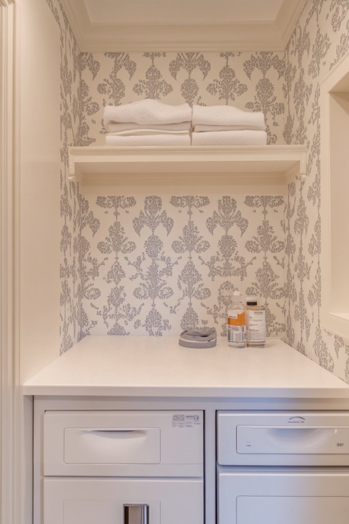 Struggling to hide clutter or keep your laundry area tidy? Patterned wallpaper with subtle designs can camouflage storage or clutter while adding style. It’s like having a secret weapon for a clean, organized space that still looks fabulous. Who says functionality can’t be fashionable?